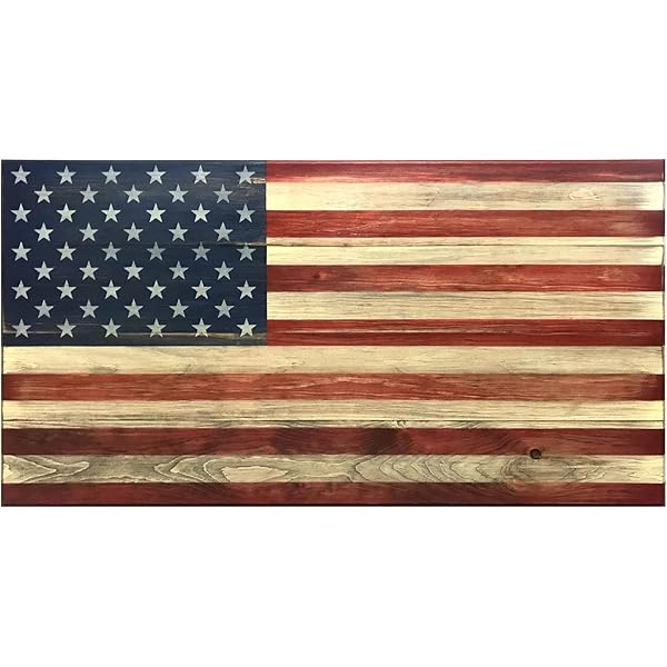 Amazon Com 36 X 19 Large Hand Crafted 100 Made In U S A Wood American Flag Patriotic Wall Art Americana Vintage Colors Home Kitchen