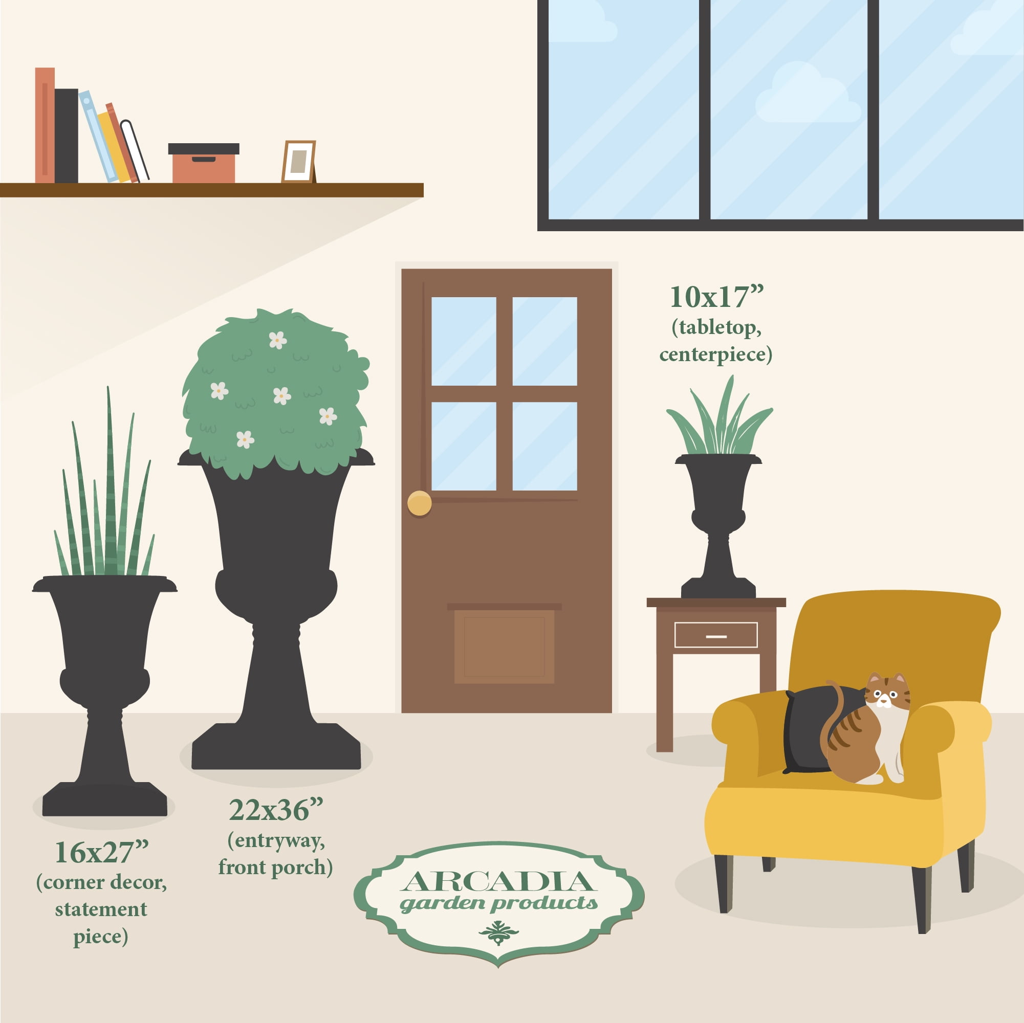 Arcadia Garden Products Deluxe Pedestal 16 In X 27 In Black Plastic Urn Pl51bk The Home Depot